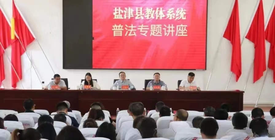 6日下午,朱建軍會長在鹽津縣第二中學禮堂,向鹽津全縣130名中小學校長講授校園安全法治專題講座,提升校長們依法治校理念和能力。