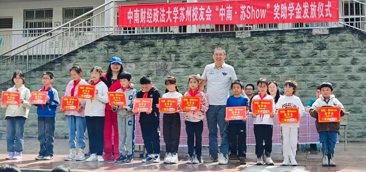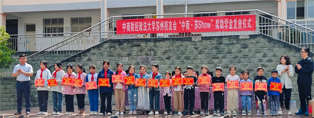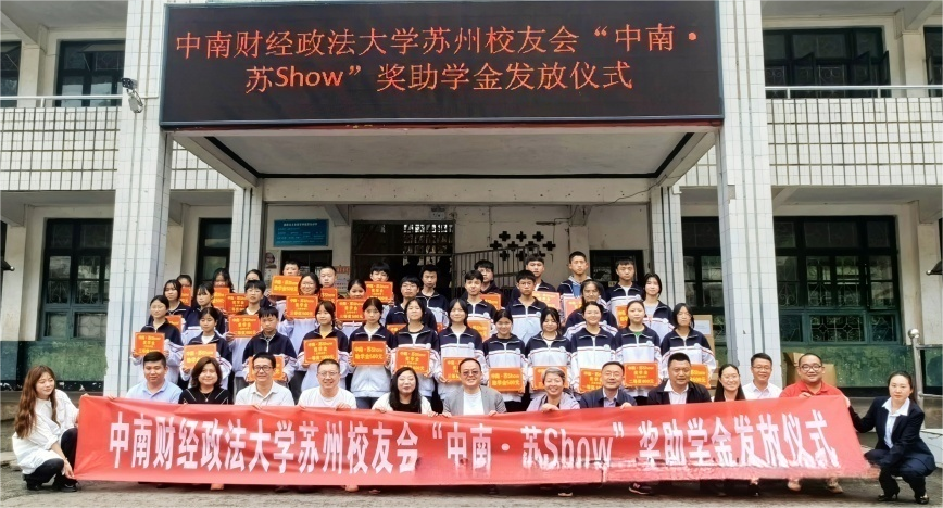 7日下午,在鹽津縣中和鎮(zhèn)艾田中學,舉行了中南財經(jīng)政法大學蘇州校友會“中南 蘇Show”獎助學金發(fā)放儀式,18名中學生獲獎。